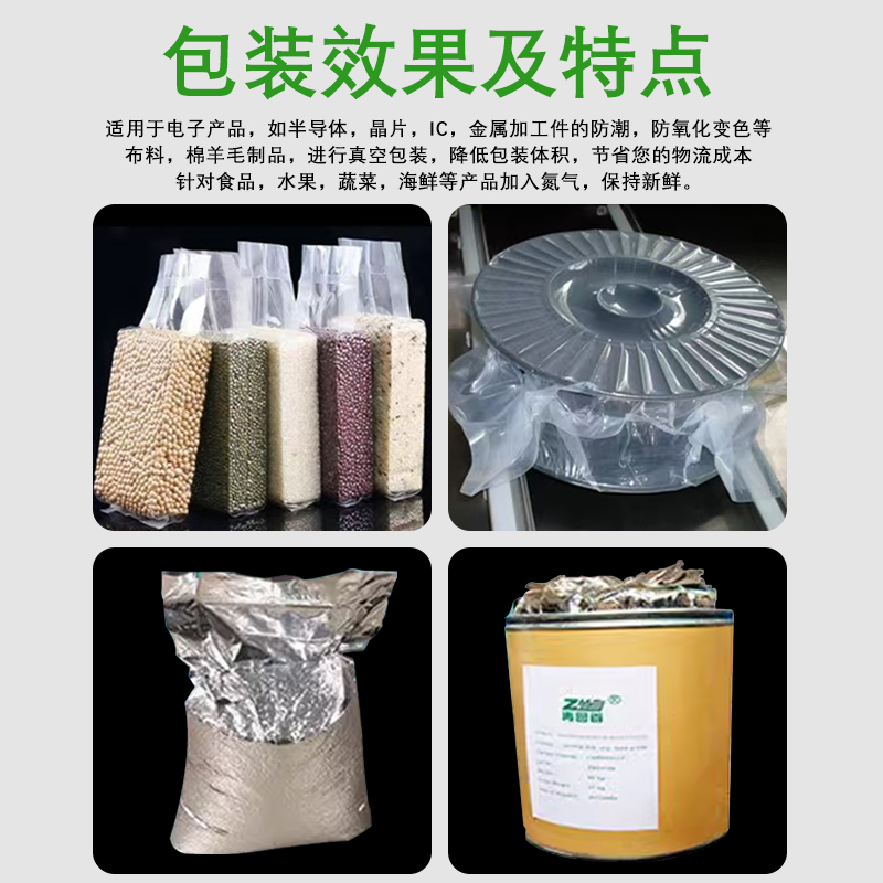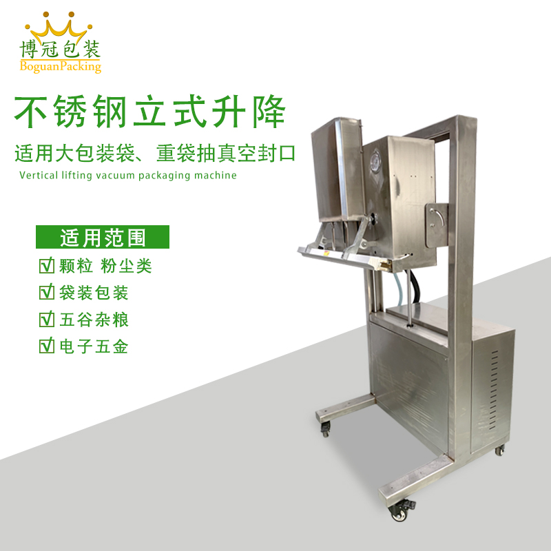 - 立式升降真空包装机:真空室容积更大,承重能力更强(部分机型可承重 50kg 以上),能处理大袋颗粒(如饲料、塑胶粒)、大件五金件等普通机型无法容纳的物品。