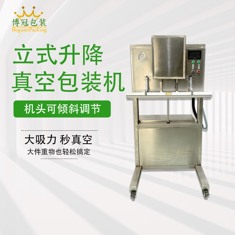- 立式升降真空包装机:核心优势是 “升降” 设计。操作人员站立即可完成放料,真空室自动下降密封,无需反复弯腰,大幅降低劳动强度,尤其适合高频次、重负载的包装场景。