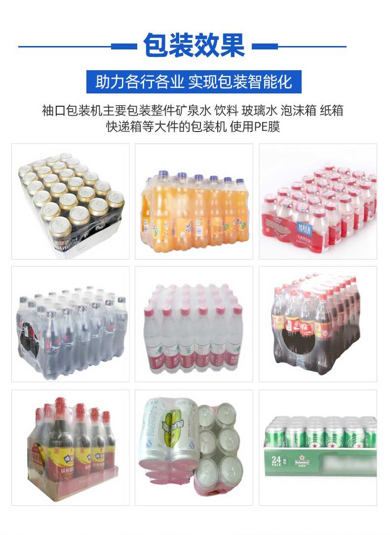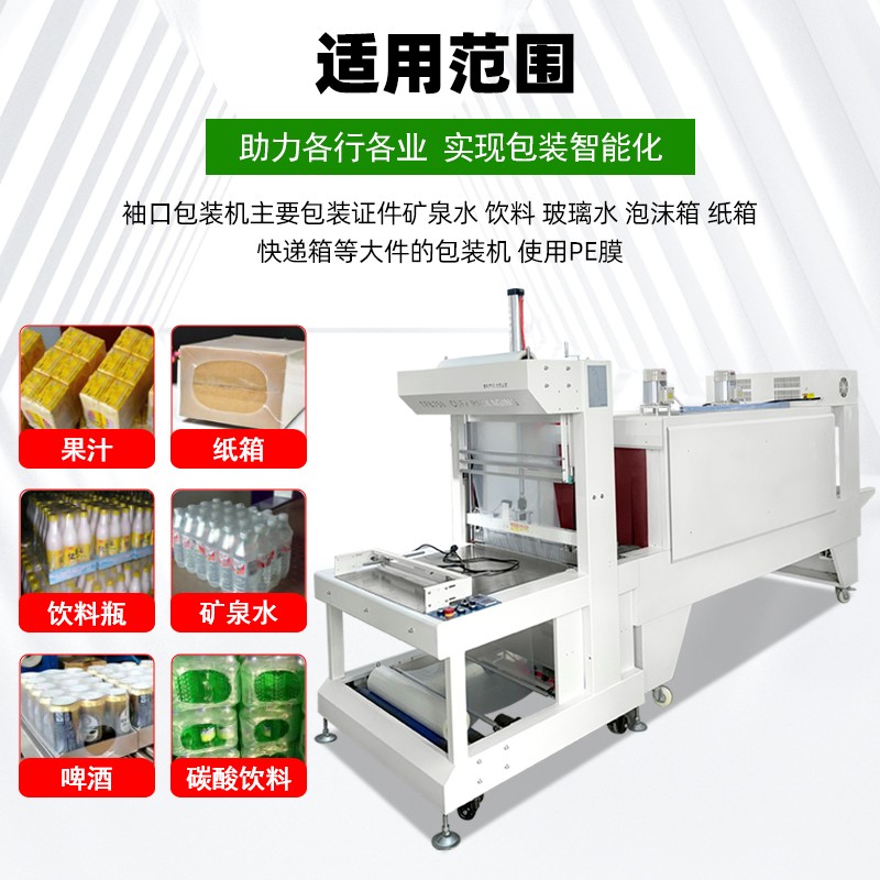 袖口式包装机是一种高效的包装设备,主要通过热收缩膜对产品进行袖口式包裹,结合封切与热风收缩工艺,形成无底托或带底托的立体包装效果。