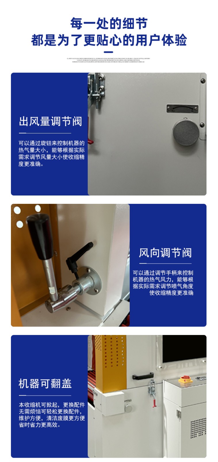 - 设备放置在干燥、通风、无粉尘的车间环境:潮湿环境易导致电气元件短路,粉尘过多会堵塞收缩炉出风口、附着在加热管表面降低效率,可加装防尘罩。