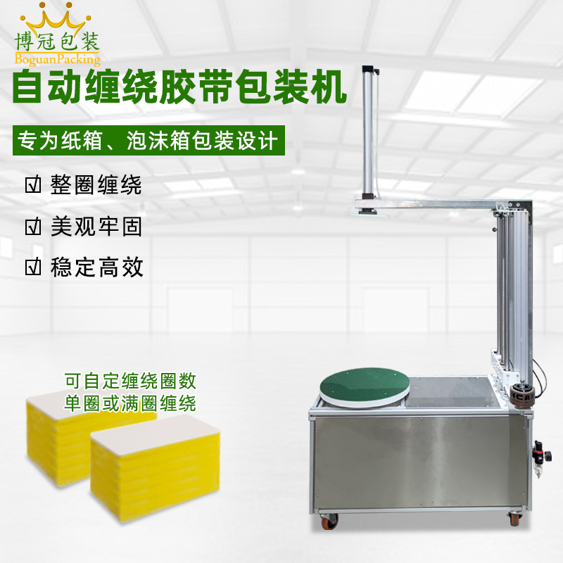 - 缠绕与人工干预:缠绕过程中,部分机型需要人工辅助旋转产品,或调整胶带的缠绕角度;当达到预设的缠绕层数后,机器停止动作。