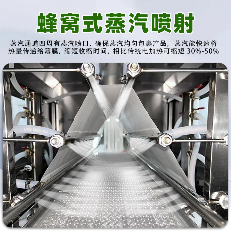 蒸汽收缩机的蒸汽能够全方位地接触薄膜,使薄膜各个部位受热均匀,收缩效果一致
