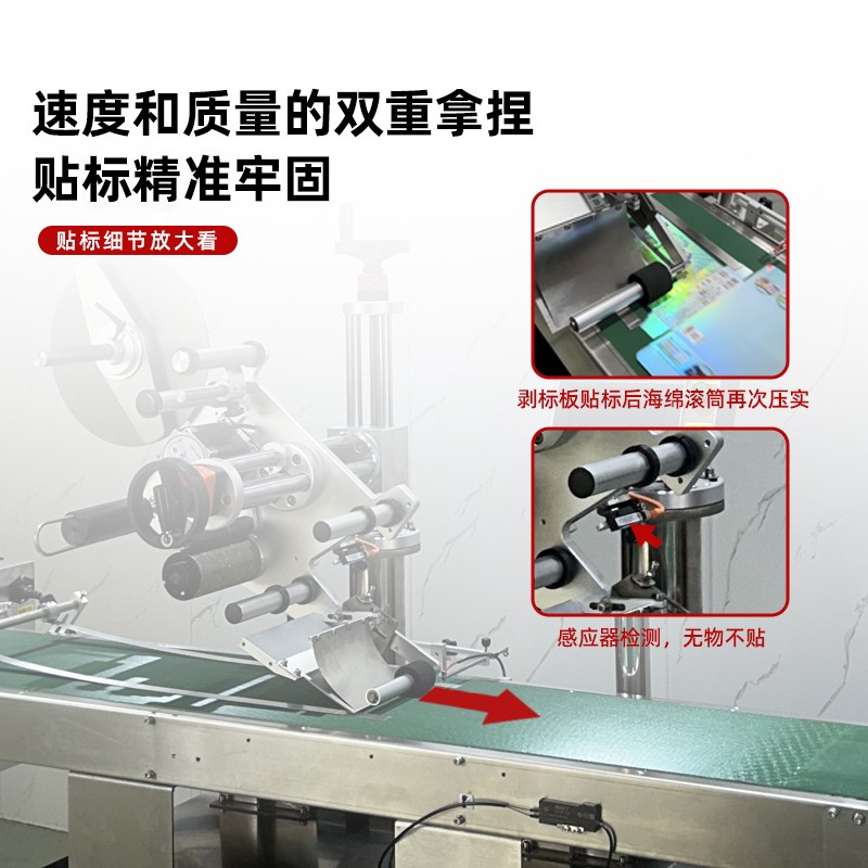 • 优化贴标头结构:检查贴标头的各个部件,如标签剥离板、压辊等,确保它们的工作状态良好。如果标签剥离板的角度不合适,会影响标签的剥离速度,进而影响贴标速度。适当调整剥离板的角度,使标签能够更顺畅地从底纸上剥离。同时,检查压辊的压力是否均匀,压力过大或过小都会影响贴标速度和质量,可通过调整压辊的弹簧压力来优化贴标效果和速度。