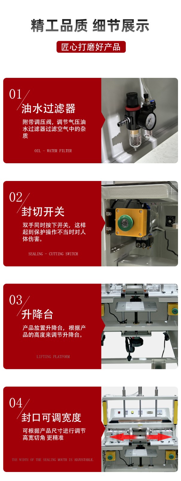 - 设备选型:不同的食品药品包装对封口效果有不同的要求,如果设备选型不当,可能无法满足特定的包装标准。例如,对于一些高阻隔性包装材料或特殊形状的包装,需要选择具有相应功能和性能的封口切角一体机。因此,在选购设备时,企业应根据自身产品的包装特点和相关标准,选择合适的机型,并咨询设备供应商的专业意见。